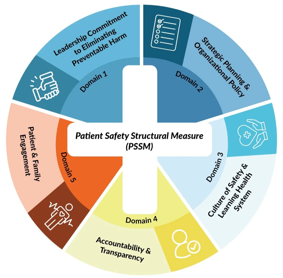 The PSSM is an attestation-based measure to assess whether hospitals demonstrate having the structure and culture that prioritizes patient safety (PSSM_Specs). The purpose is to “drive action and improvement in patient safety across key domains” (PSSM_AttestationGuide_073124) by encouraging implementation of best practices for using a total systems framework that views patient safety events as a result of system failure, rather than individual error.